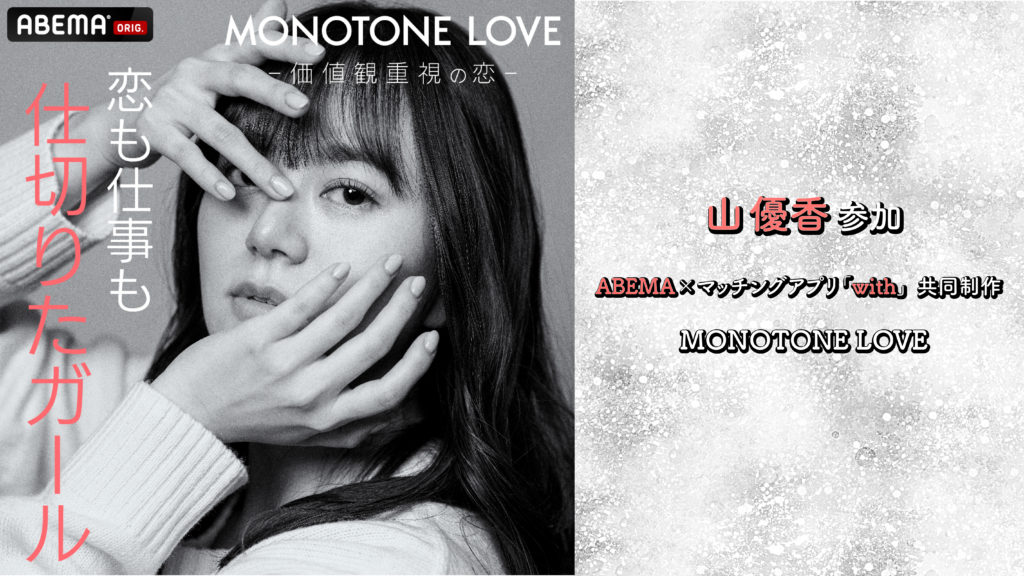 山優香 - ABEMA 新恋愛リアリティーショー 「MONOTONE LOVE ー価値観重視の恋ー」参加決定…